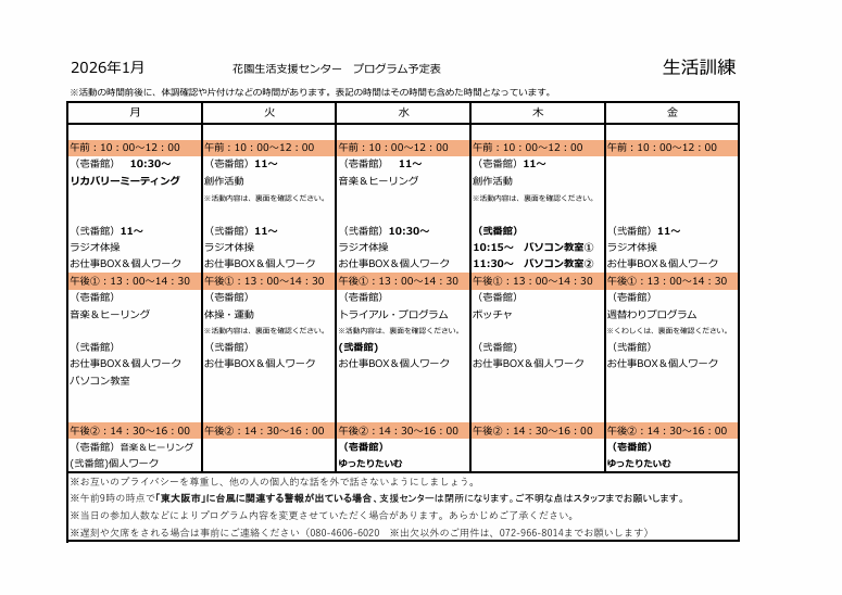 ホーム花園生活支援センター(日中活動部門)活動紹介